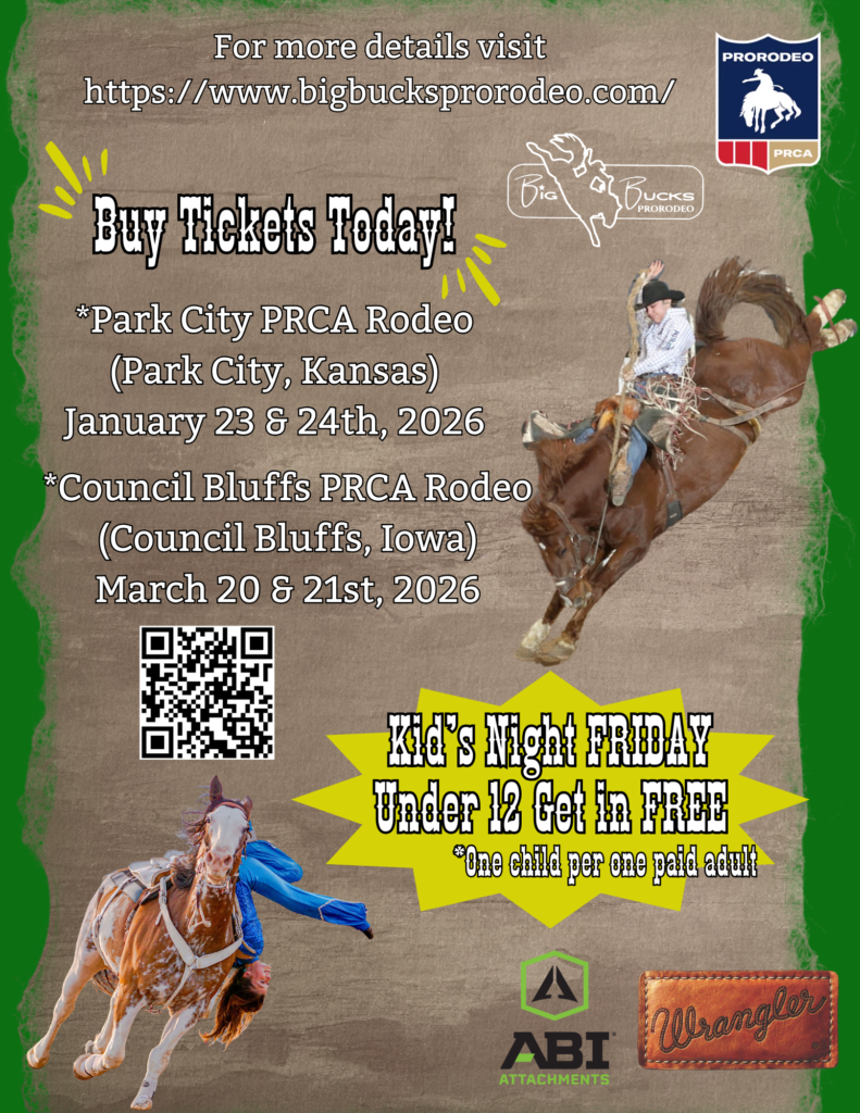 When the calendar flips to January 2026 Park City, Kansas is the first stop on Big Bucks ProRodeo Winter Run. The stock contracting firm rooted in Utah and Nevada are bringing their wild west entertainment to agricultural communities across the Midwest. The Big Bucks ProRodeo crew will transform indoor venues into rodeo arenas, bringing in dirt, setting up panels, showcasing their livestock and entertaining crowds. Diehard rodeo fans will recall Big Bucks ProRodeo purchased the Mosbrucker Rodeo Company card in 2024.