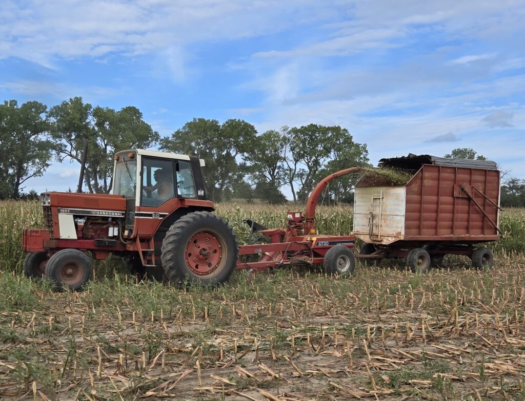 Raising corn is kind of an important part of the operation and it has been a good dry land crop. They run our cows on corn stocks and bale stocks as filler in the feed ration, plus use some corn stocks for bedding. They buy distillers by-product from the corn ethanol plants and use corn in our feed rations.